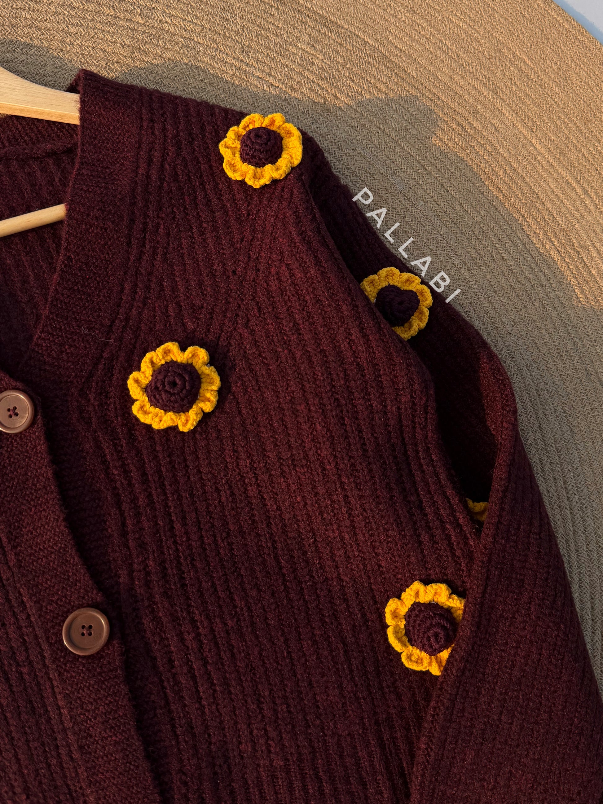 Handcrafted Flower Cardigan- Maroon Sunflower