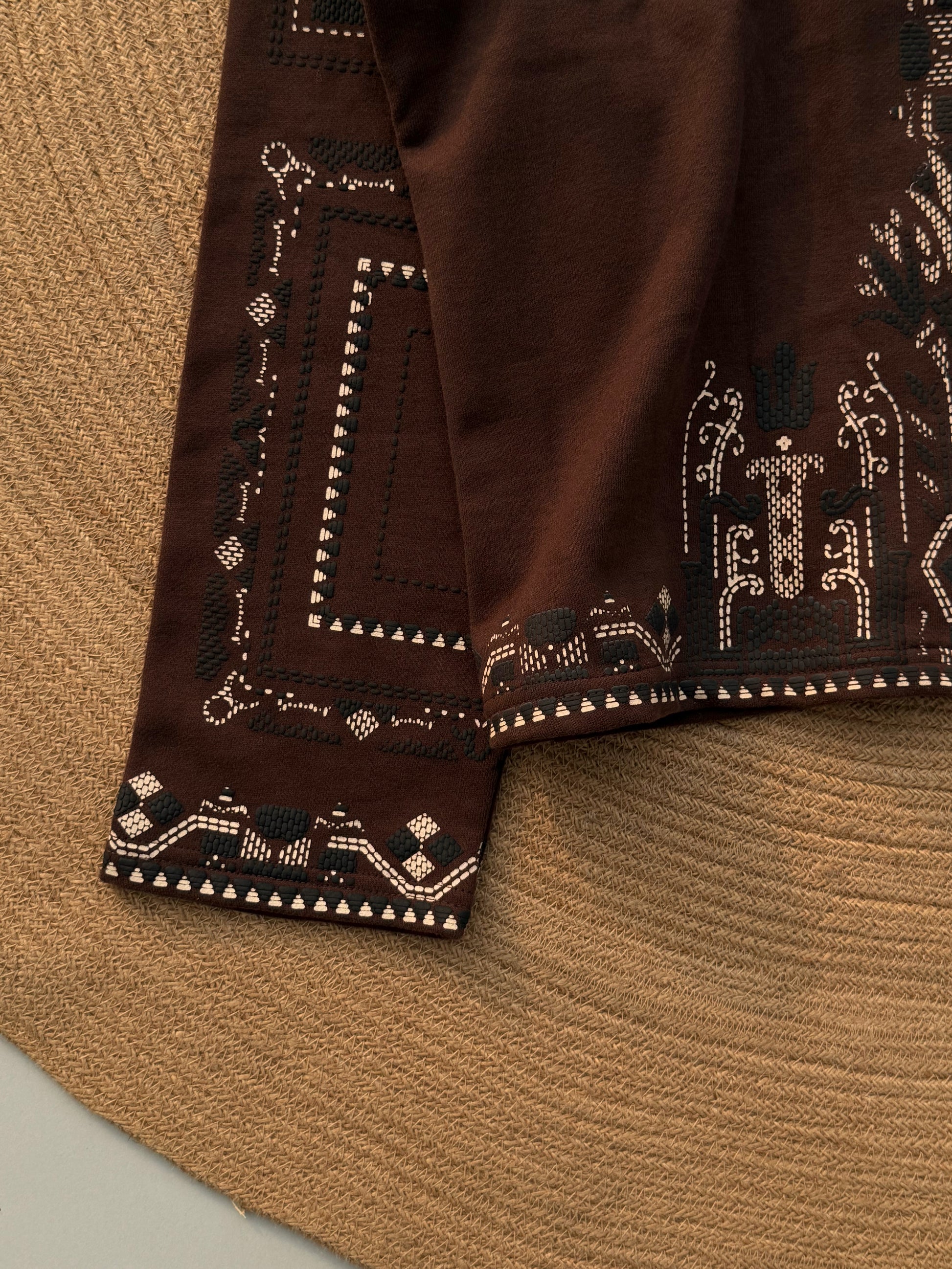 The Detail: Authentic, earthy embroidery that adds a touch of vintage charm.